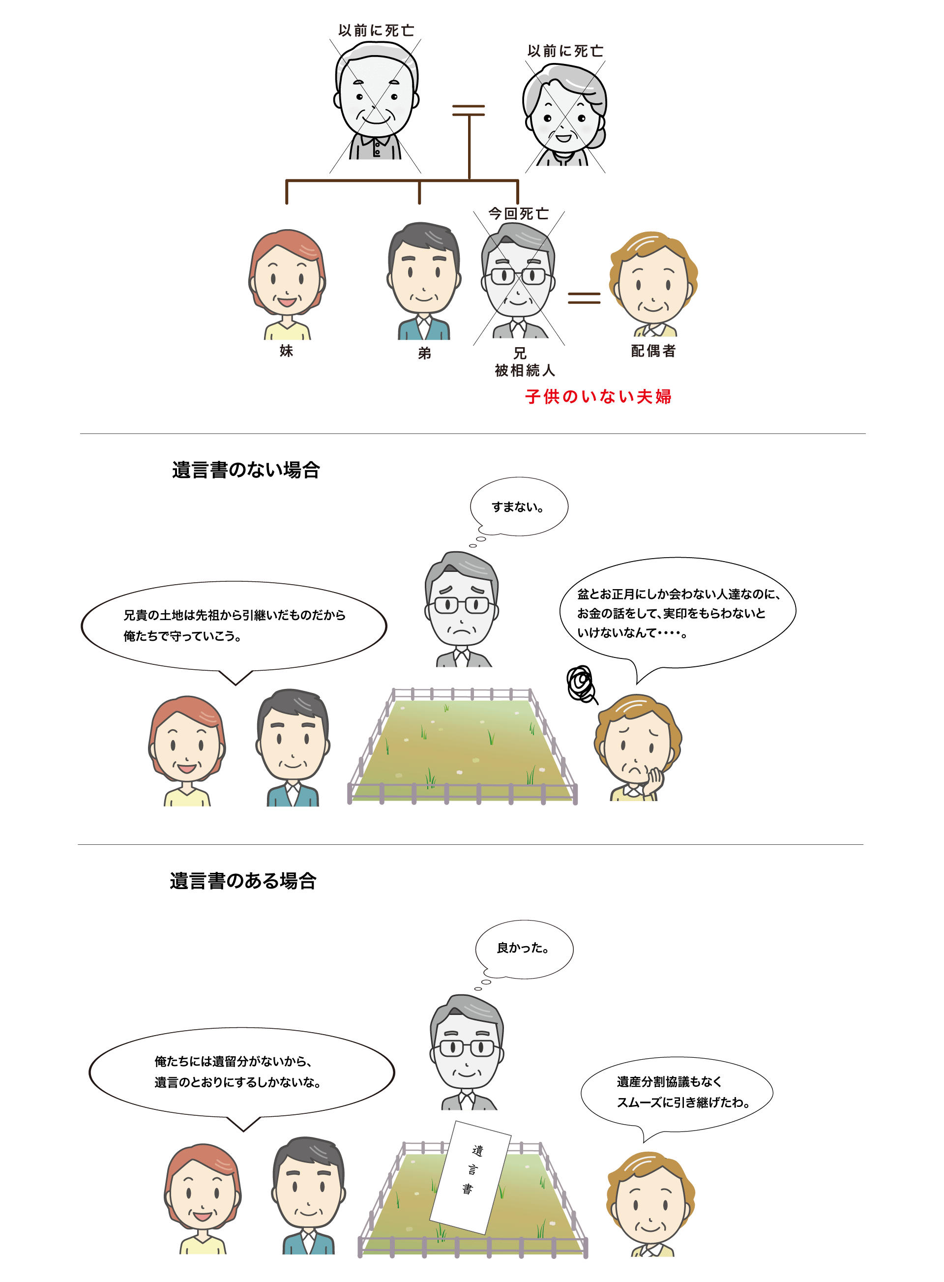 下記のイラストはトラブルの多い「兄弟相続」の事例です。